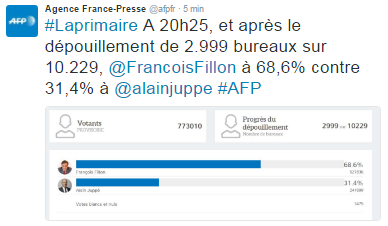 Très mauvais pour les Lepénistes car le conservatisme de Fillon (qui a reçu le soutien des ténors du Mouvement de la Marche contre le ‘mariage pour tous’) va leur arracher au premier tour de la future présidentielle l’électorat conservateur de droite (déjà échaudé par une direction mariniste tyrès « gay friendly »). D’où les commentaires furieux de Marine Le Pen et de l’ultra-conservatrice Marion Maréchal-Le Pen, les deux tendances idéologiques rivalesq du FN …
